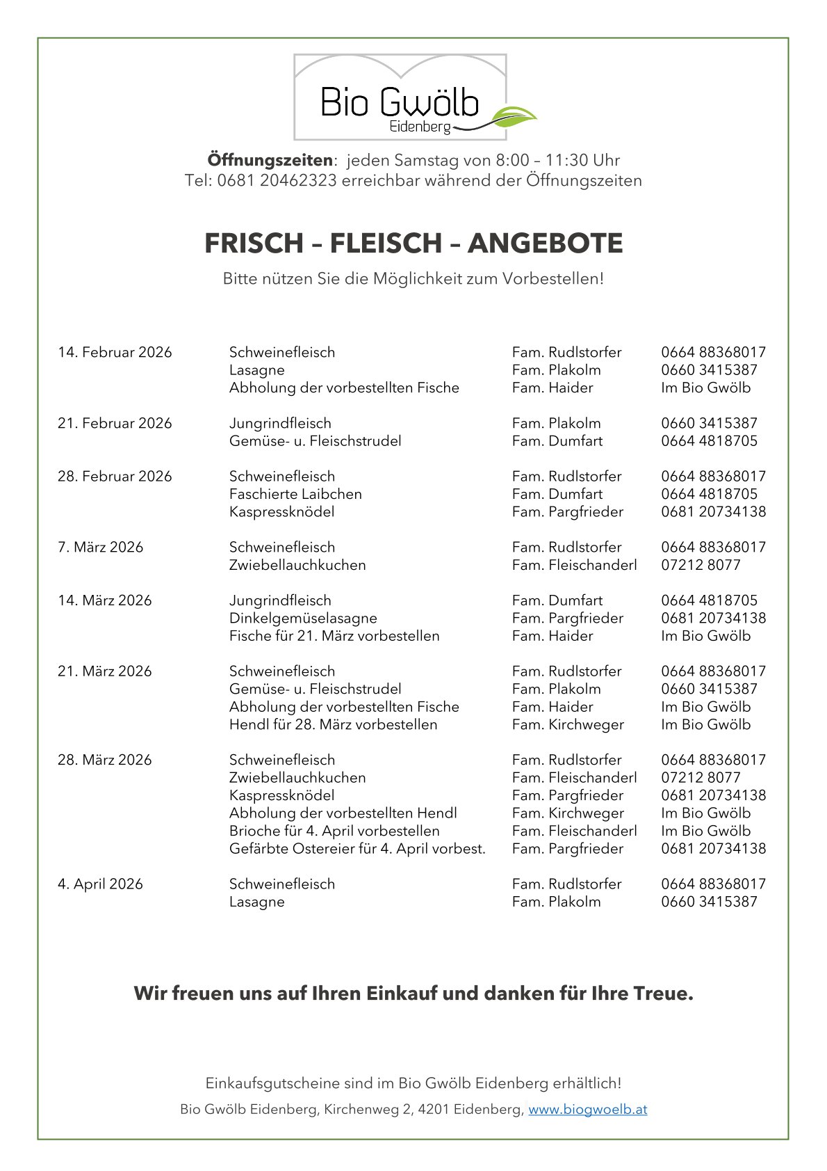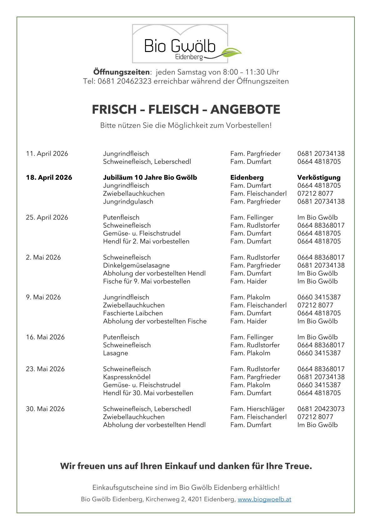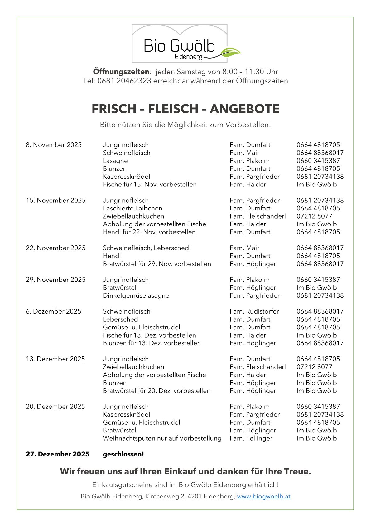 BESUCHEN SIE UNS IM BIO GWÖLB!